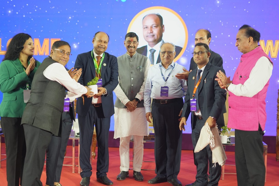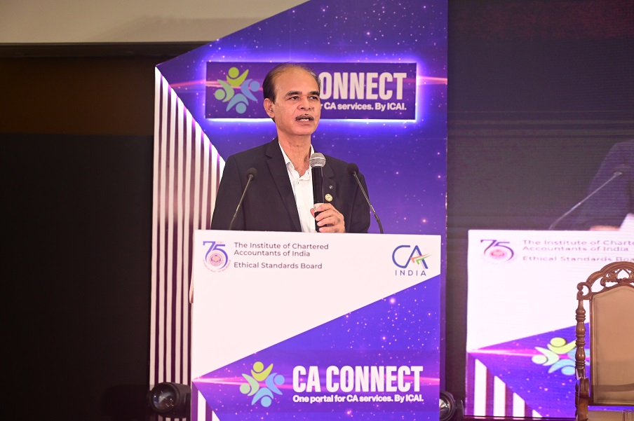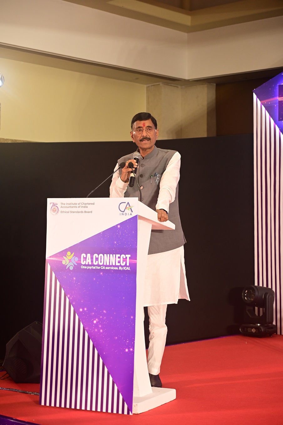 CA. (Dr.) Anuj Goyal, Chairman, ESB, Shri Sanjay Seth, Hon’ble Minister of State for Defence, Govt. of India, CA. Sunil Mehta, Executive Director, Coal India Ltd. & CA. (Dr.) Girish Ahuja, imminent tax expert being felicitated during the launch of the CA Connect Portal on 1st September 2024